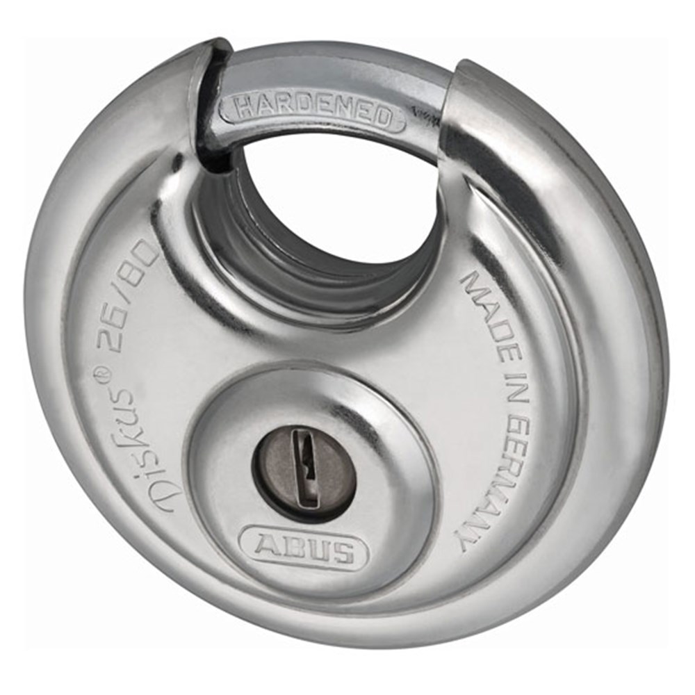 ABUS 26/90 padlock Diskus®, with 80 mm stainless steel body.