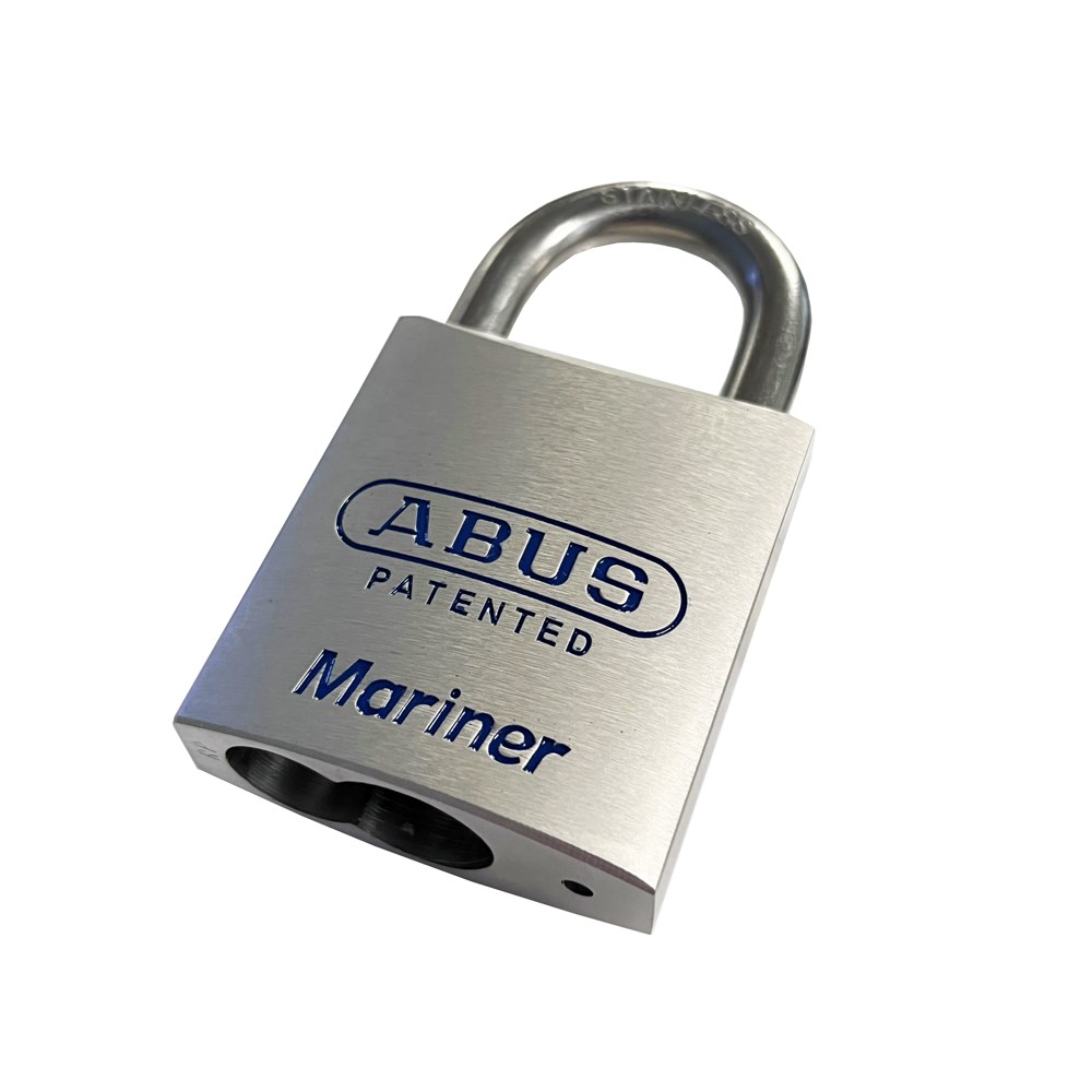 ABUS 83MAR/45 "Mariner" Padlock has been specifically developed for outdoor conditions. The special "pearl chrome" plating provides superior corrosion protection. Supplied less cylinder.