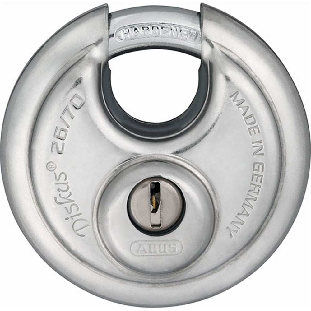 ABUS 26/70 padlock Diskus®, with 70 mm stainless steel body.