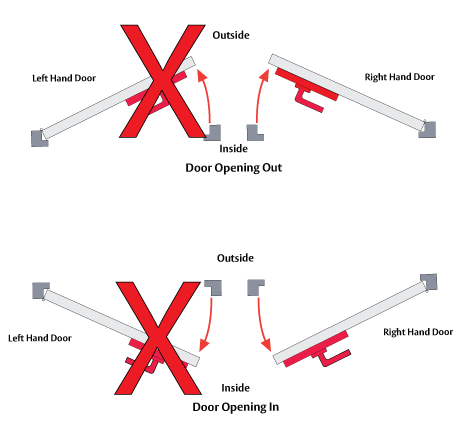 Lever inside only suits Right Hand doors (Not compatible with external access cylinder).