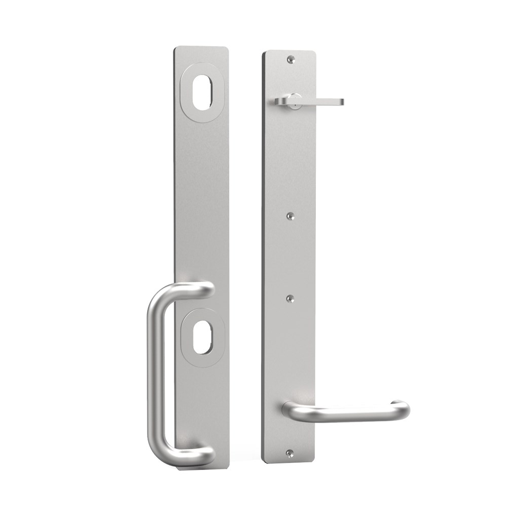 This innovative technology offers a single lever that activates both locks simultaneously in one smooth action. This overcomes the existing problem of having to use a double handed action with dual locks to open a door.
