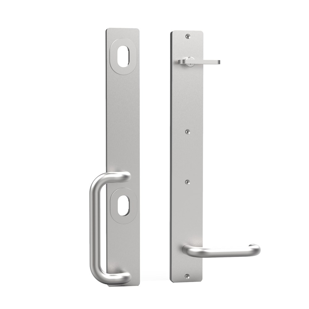 This innovative technology offers a single lever that activates both locks simultaneously in one smooth action. This overcomes the existing problem of having to use a double handed action with dual locks to open a door.