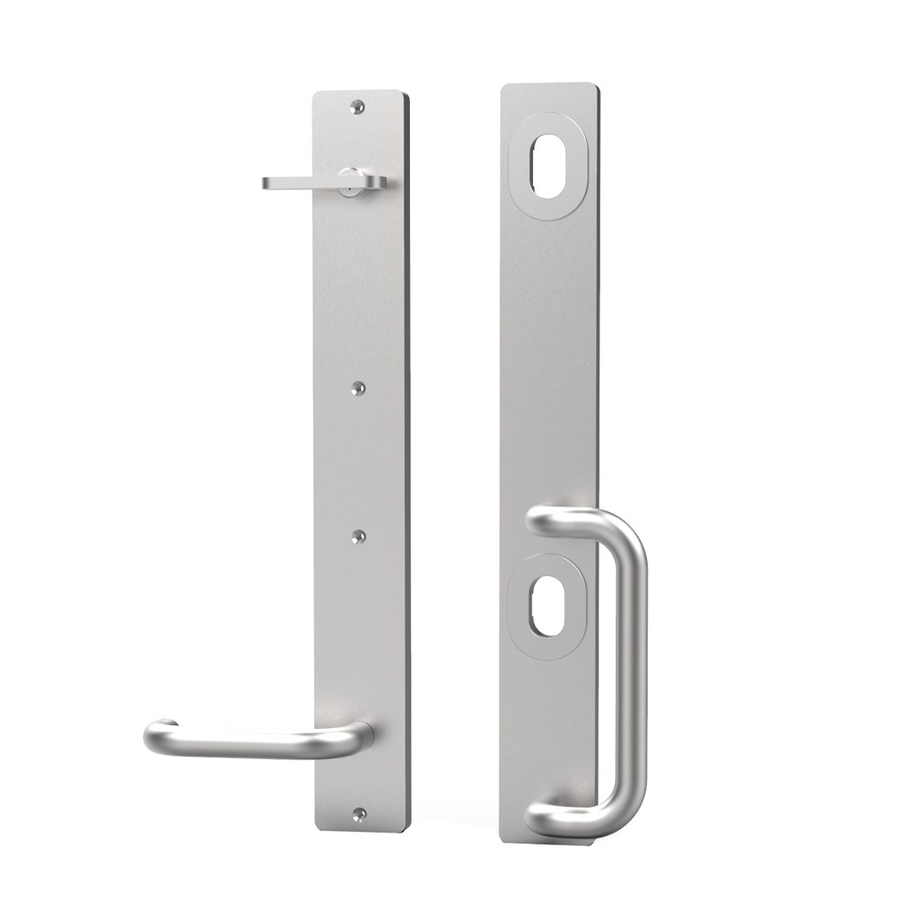 This innovative technology offers a single lever that activates both locks simultaneously in one smooth action. This overcomes the existing problem of having to use a double handed action with dual locks to open a door.