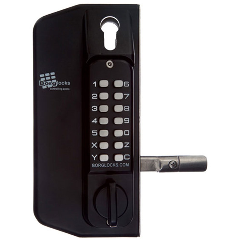 Borg Mechanical Digital Gate Lock with Anti Climb Case Back to Back Keypads and Euro Cylinder Key Override Marine Grade Black - BL3175GATEK