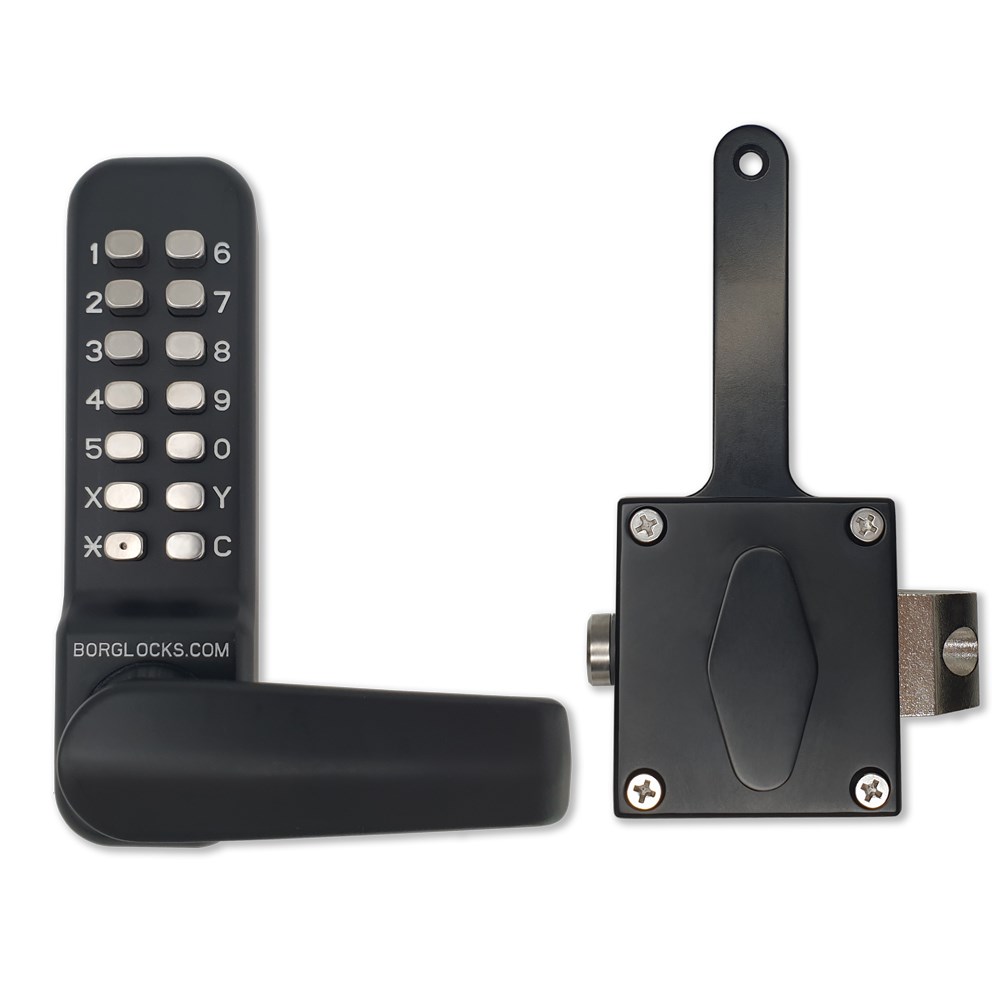 Borg Digital Lock ECP Keypad & Lever with Rim Fixed Slam Latch & Concealed Fix Strike Marine Grade Black - BL4409MGPROECP