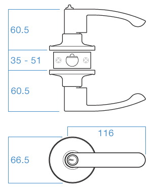 - Key outside locks and unlocks both levers.