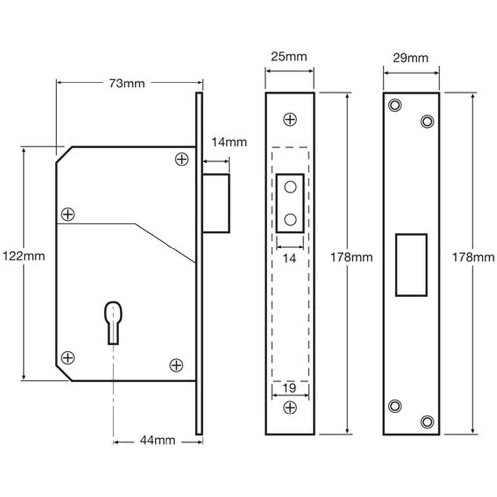 Chubb/Union 3G110 5 detainer mortice lock. 73 mm case depth.