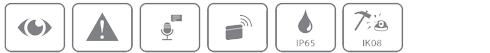 Aluminium alloy plate, IK08, IP65 (Apply silica gel to gaps between the device and the wall. Liquid sodium silicate is recommended. For details, see the quick start guide).