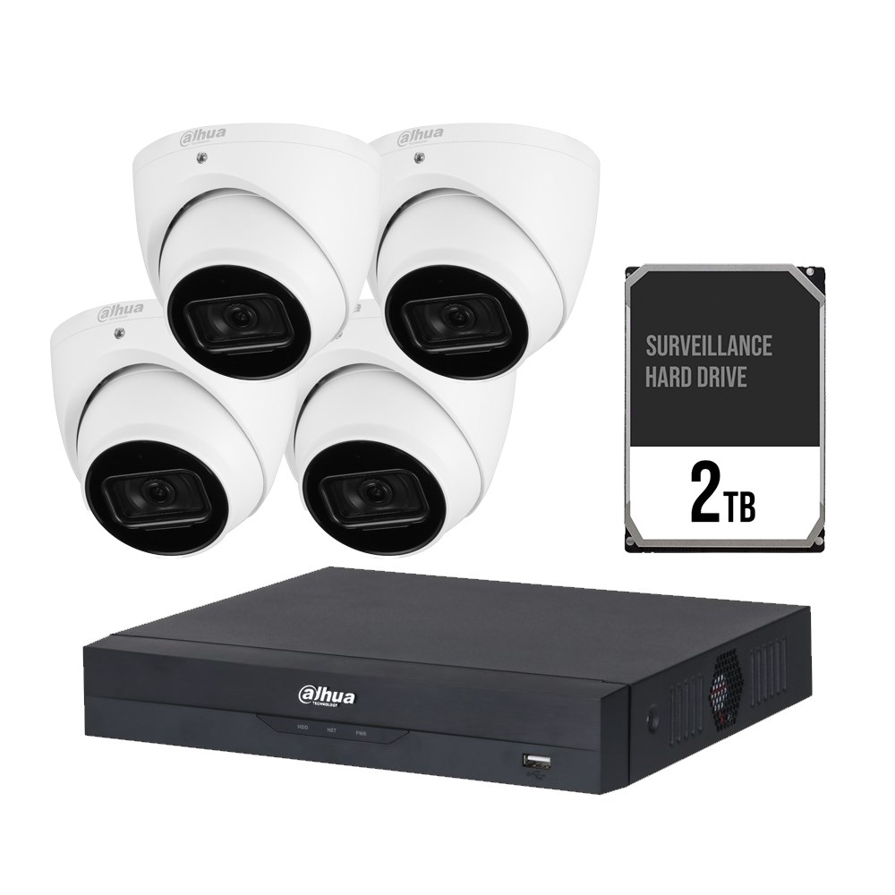 Dahua WizSense AI 4 Channel Camera Kit including 4x 6MP Eyeball Fixed Lens Cameras and 2TB HDD