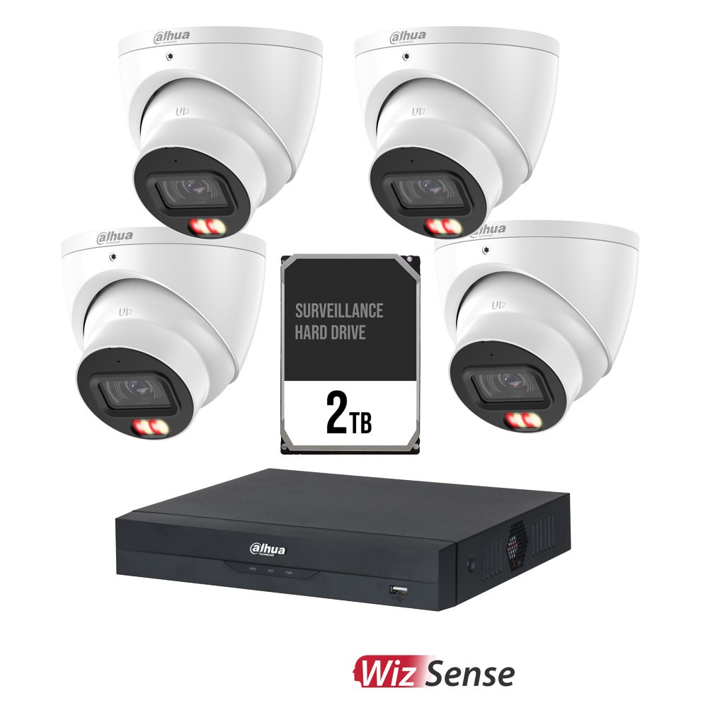 Dahua WizSense AI 8 Channel Camera Kit including 4x 8MP Eyeball Fixed Lens Cameras and 2TB HDD