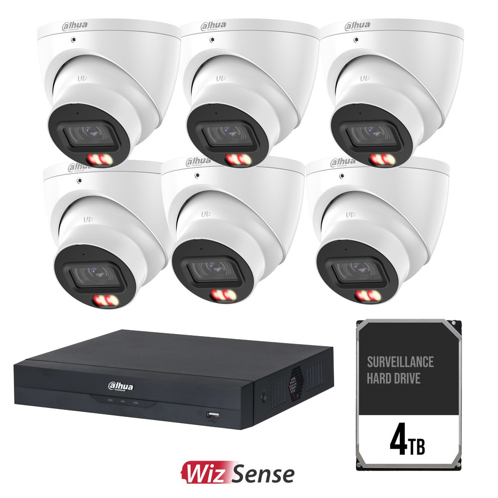 Dahua WizSense AI 8 Channel Camera Kit including 6x 8MP Eyeball Fixed Lens Cameras and 4TB HDD
