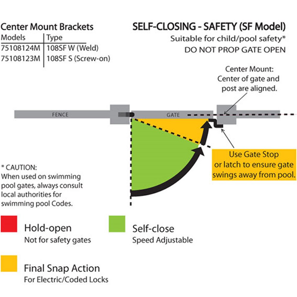 Centre mount D&D Sure-Close hinge. SELF-CLOSING from 90° with snap close feature.