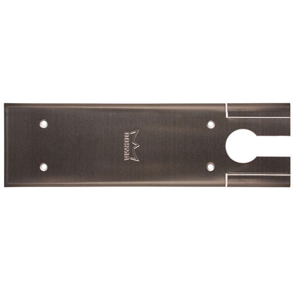 Adaptable to right or left hand single action applications by simply snapping off the appropriate pre-blanked corner sections. For double action doors, the corner sections remain in place.