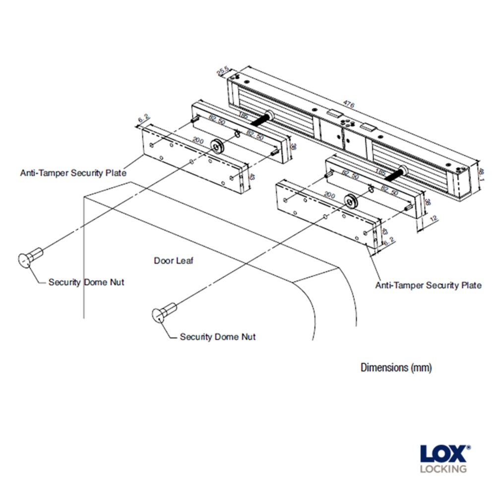 LOX LEM3500 series maglock to suit double doors monitored.