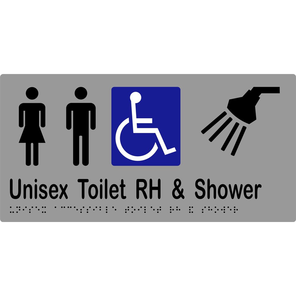 - Tactile Text reads: Unisex Toilet RH & Shower.