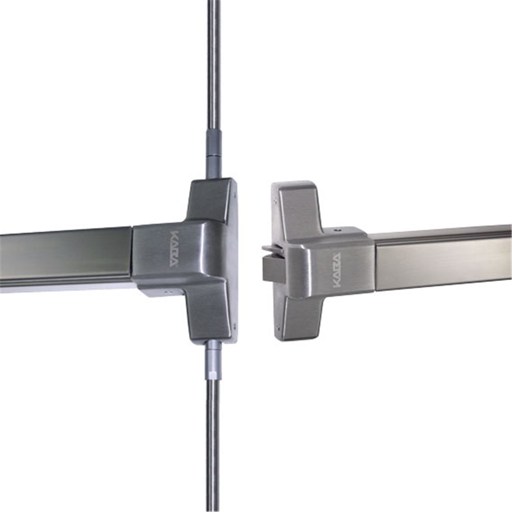 The dormakaba ED22DP series Exit Only double pack panic exit devices are designed to provide emergency egress by a single action pushing motion via a modern design touch pad, fitted horizontally across the doors.