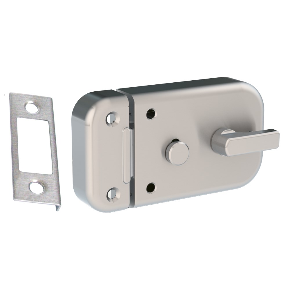 • 12 mm stainless steel latch bolt, lock case and striker plates.