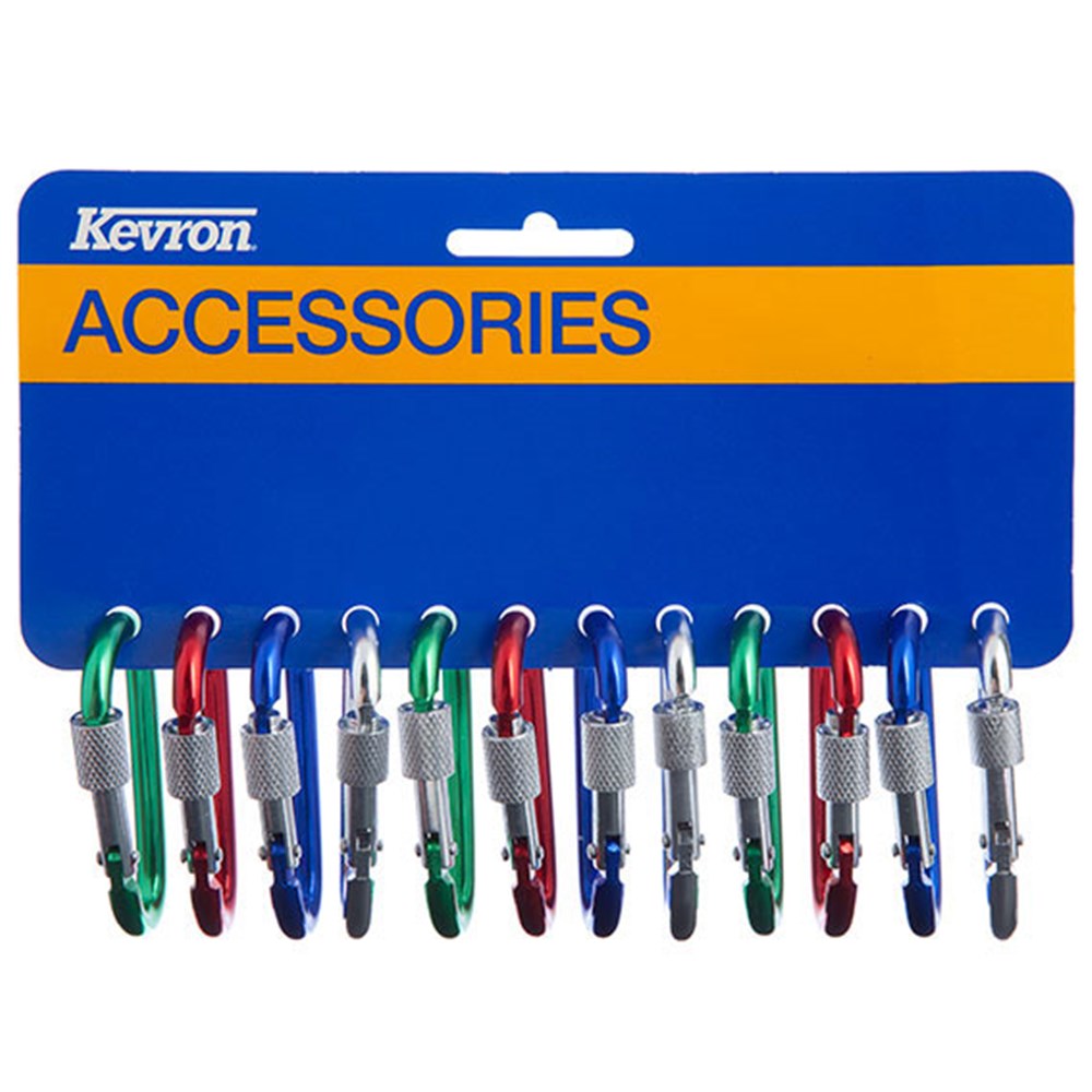 Kevron locking (screw fix) carabiners in assorted colours - large.