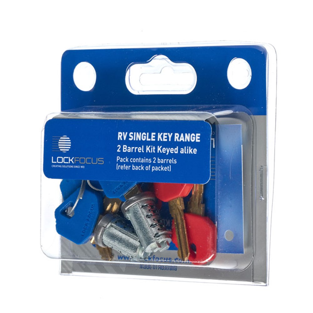 Replacement kits for all lock housings capable of being fitted with Lock Focus 'RV Single Key Range barrels. Kits are supplied with dust covered stainless steel capped zinc plated barrels with keys and 2 Red exchange keys to remove the old barrels.