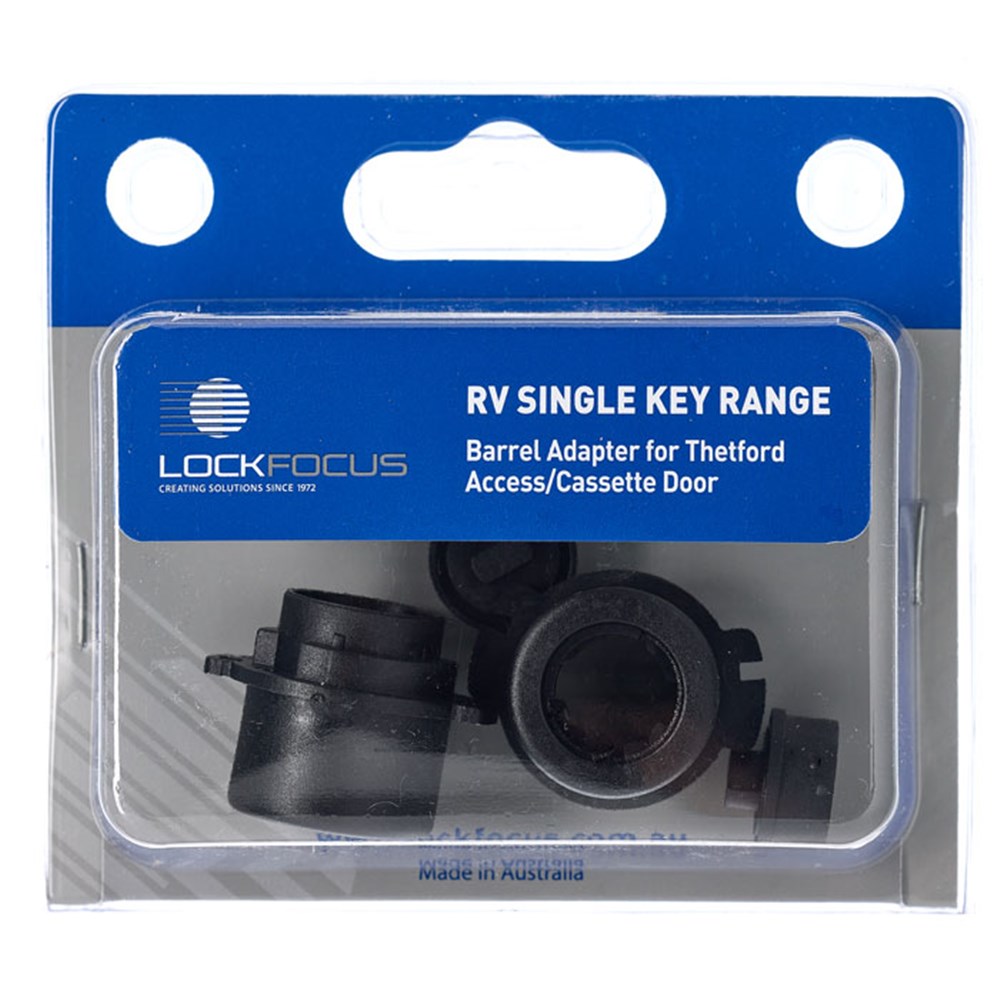 This Barrel adaptor enables the fitment of Lock Focus 'RV Single Key Range barrel eliminating the need to have a different key for every lock.