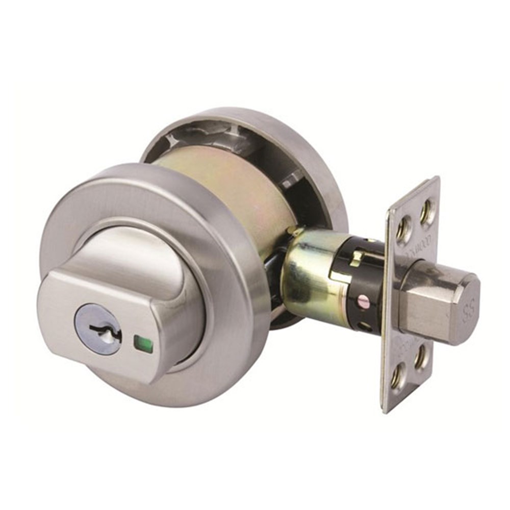 Paradigm 005 stainless steel deadbolt with LockAlert® status indicator, Safety Release™ and DualSelect® locking suitable for both residential and architectural applications.