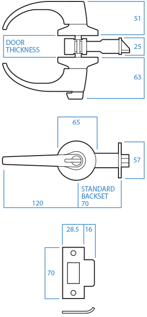 - 70 mm backset standard.