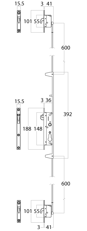 Lockwood 3 point kit for use with Lockwood 8654 hinged security screen door locks.