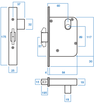 Lockwood Synergy® 3573 Series sliding door mortice privacy latch with through fixing.