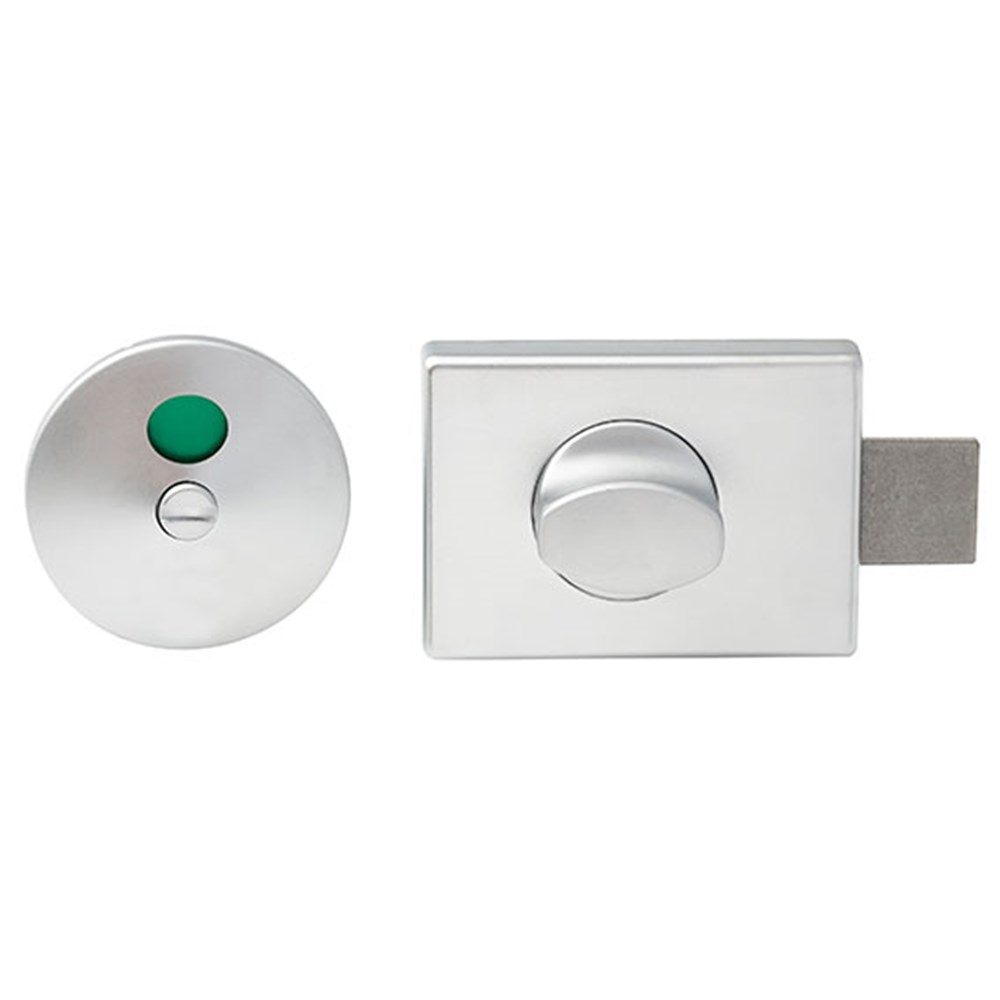 Lockwood 801 surface mounted toilet indicator bolt. Finished in satin chrome pearl.