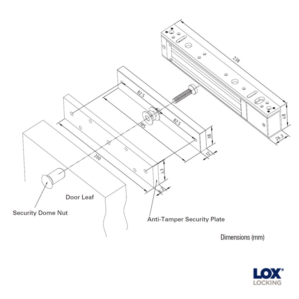 LOX LEM3500 series maglock to suit single door monitored.