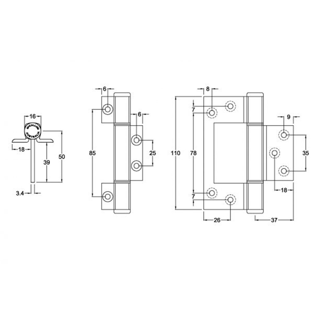 McCallum aluminium heavy duty interfold hinge.