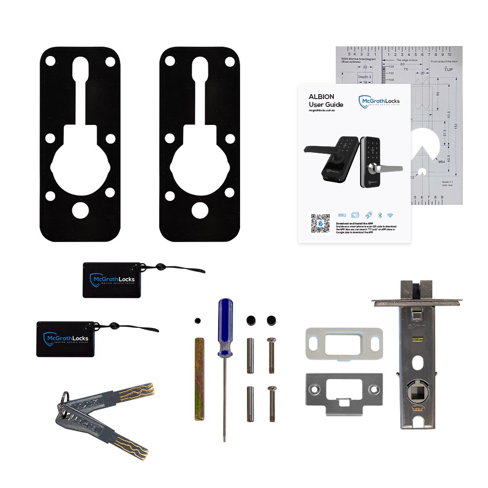 Utilising the powerful McGrath Locks App, lock and user settings are easily configured and managed. Access can be provided to family and visitors alike through pin code, RFID credential, eKeys managed via BLE and mechanical key override. By adding a McGrath Locks Wi-Fi gateway you can remotely unlock the ALBION from anywhere in the world using the McGrath Locks App.