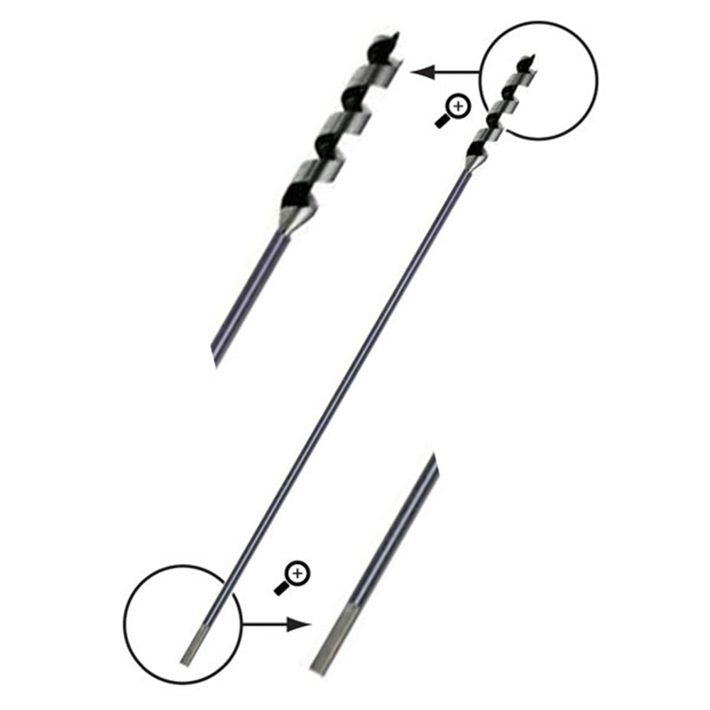 These high quality High Carbon Steel Auger Drill Bits have a single outer spur that cuts a ring around the diameter of the hole being drilled and a unique precision ground cutting lip chips away the waste