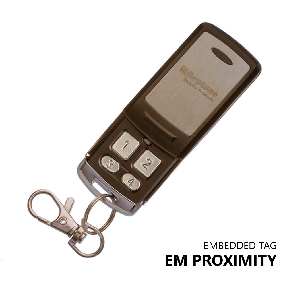 Neptune remotes have a range of up to 100m (open air) and are compatible with the Neptune range of Standalone (Relay output) or Wiegand receivers. These remotes are custom programmed and programming information will need to be provided upon ordering. Embedded EM Proximity tag will be custom programmed with matching site code and user range as RF remote unless otherwise specified.