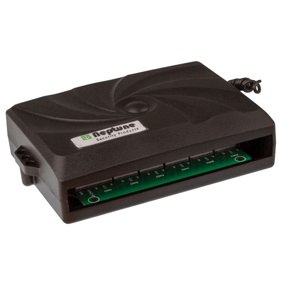 The Neptune 6 channel Wiegand receiver is a long range, high security RF receiver which employs KEELOQ® code hopping technology. It provides 6 output channels of 26 bit Wiegand protocol and connects to the controller in the same way as a typical card reader. 34 bit Wiegand can be provided upon special request.