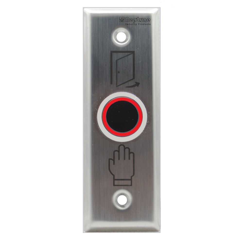 Neptune IP65 touchless exit button with IR sensor, LED indicator, Range Adjustment, Open Delay, Toggle.