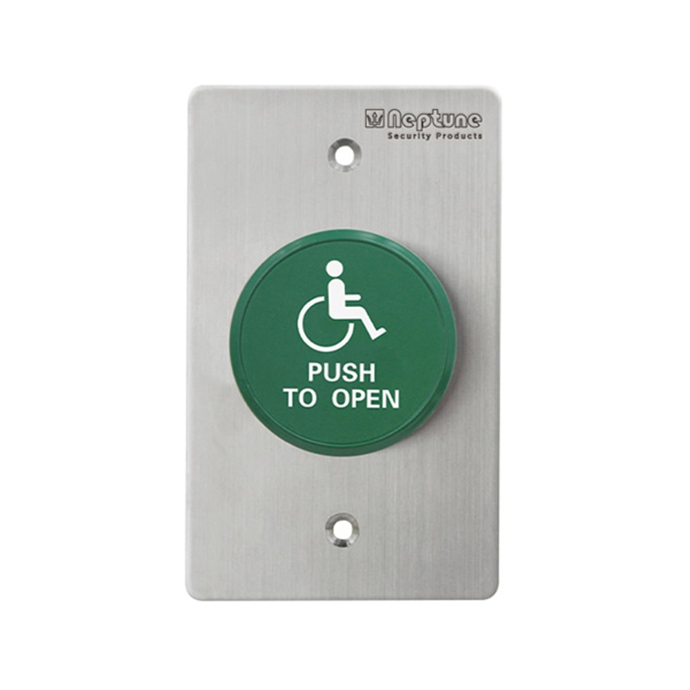 Neptune "Push to Open" green flat button.