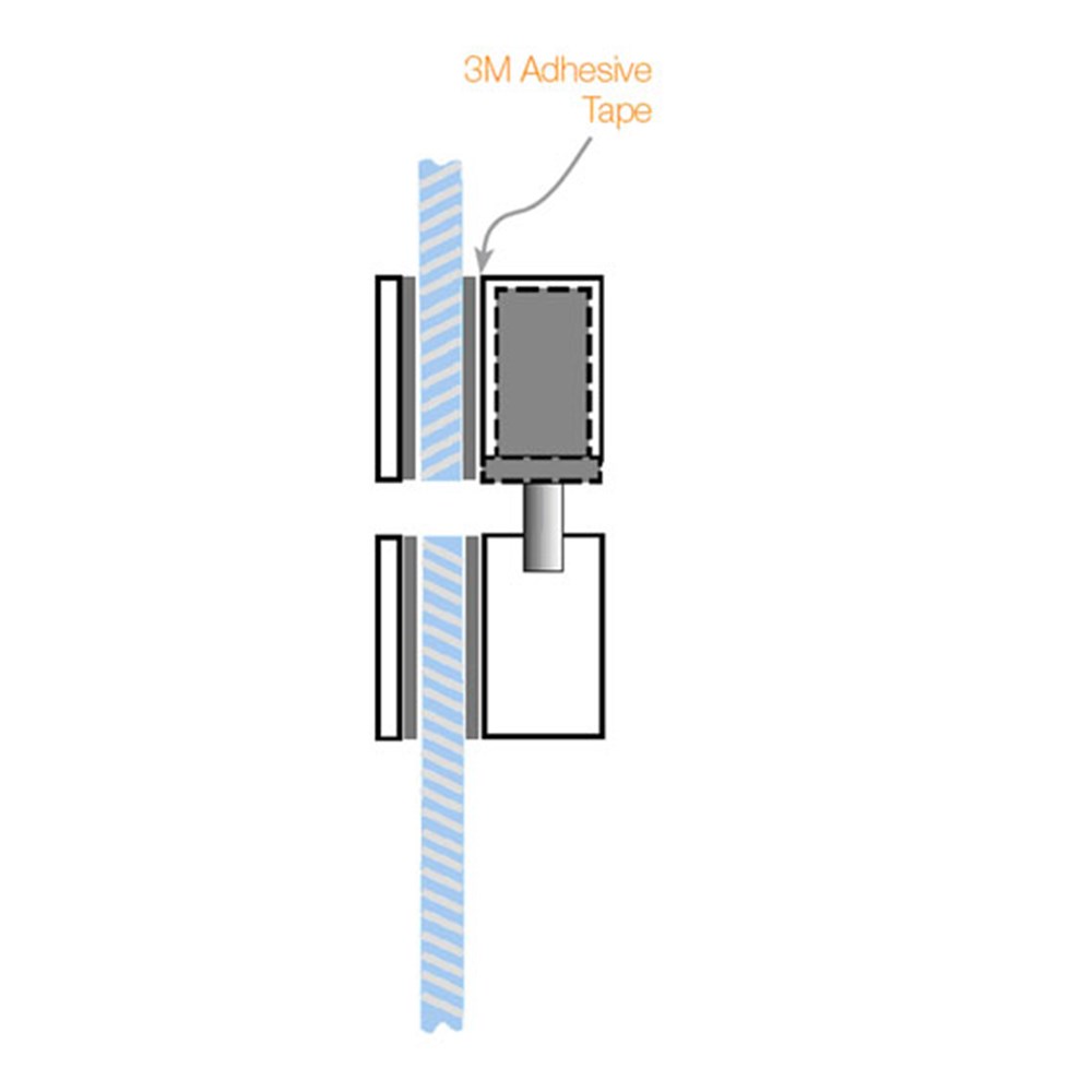 The ES8000 Glass door bracket is fixed to the glass by means of 3M self adhesive tape. This type of fixing gives a great aesthetic appearance as well as easy installation.