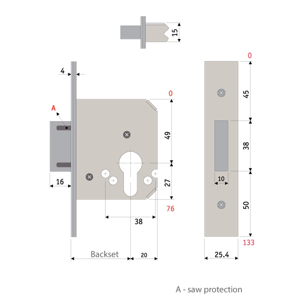 PROTECTOR single throw Euro cylinder mortice deadbolt with 45 mm backset.
