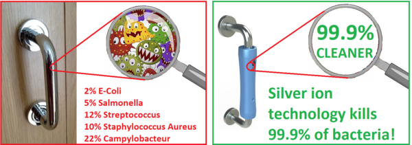 - Proven in the lab to kill 99.9%1 of bacteria, using silver technology embedded into handle surface (independently tested to ISO 22196).