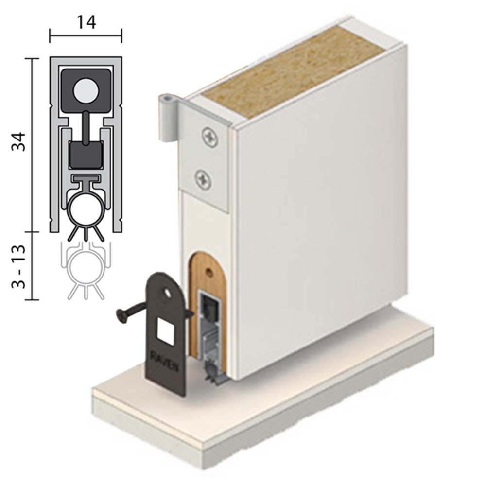 A concealed, automatic door bottom seal that is spring loaded to lift clear of the floor when the door is opened. It is acoustically designed, featuring silicon gaskets for medium temperature smoke and fire door applications. Operated automatically by pressure against the door jamb on its adjustable strike. RP8Si can also be fitted into the bottom rail of a metal door by the fabricator. Has a level adjustment to achieve an optimum seal.
