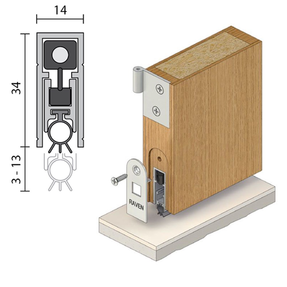 Location: Fully morticed into a 15 mm x 34 mm groove into the bottom of single and double butt hinged timber and metal doors.