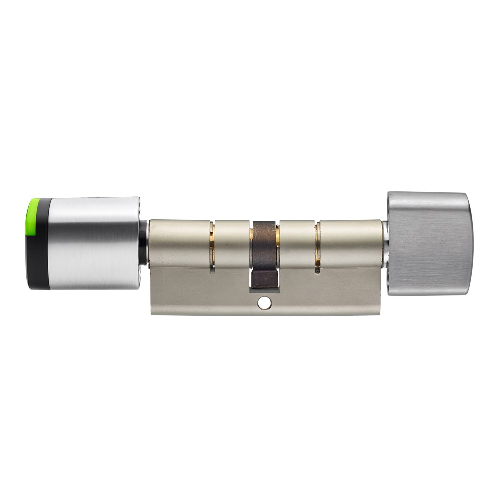 SALTO NEO, Euro Cylinder, Mifare, BLE + HSE, 45 x 45mm, Standard Thumbturn, Satin Chrome, D Cam, Black Reader, (IP66)