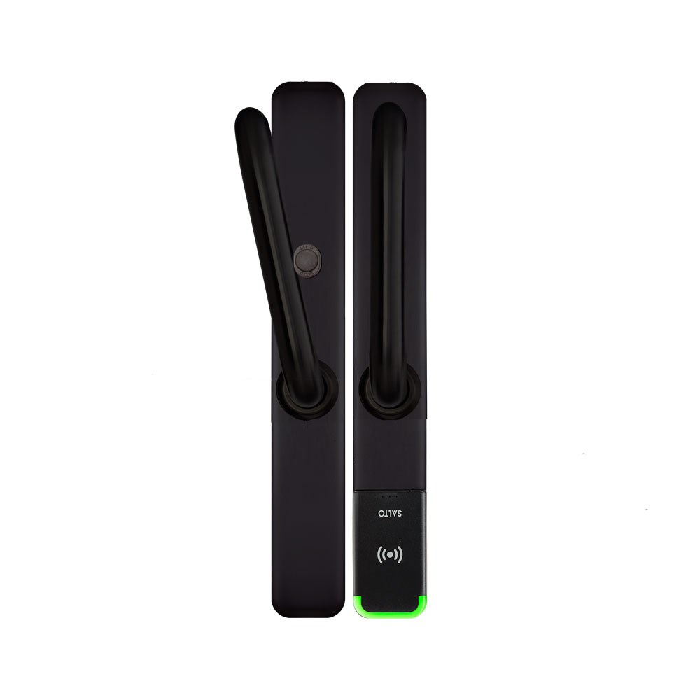 SALTO XS4 ONE Escutcheon with Electronic Privacy, U Handles, HSE, BLE and Mifare DESfire, 7.6mm Spindle, Black Finish with Black Reader suit 42-47mm Door, For Upside Down Mounting on Sliding Door and