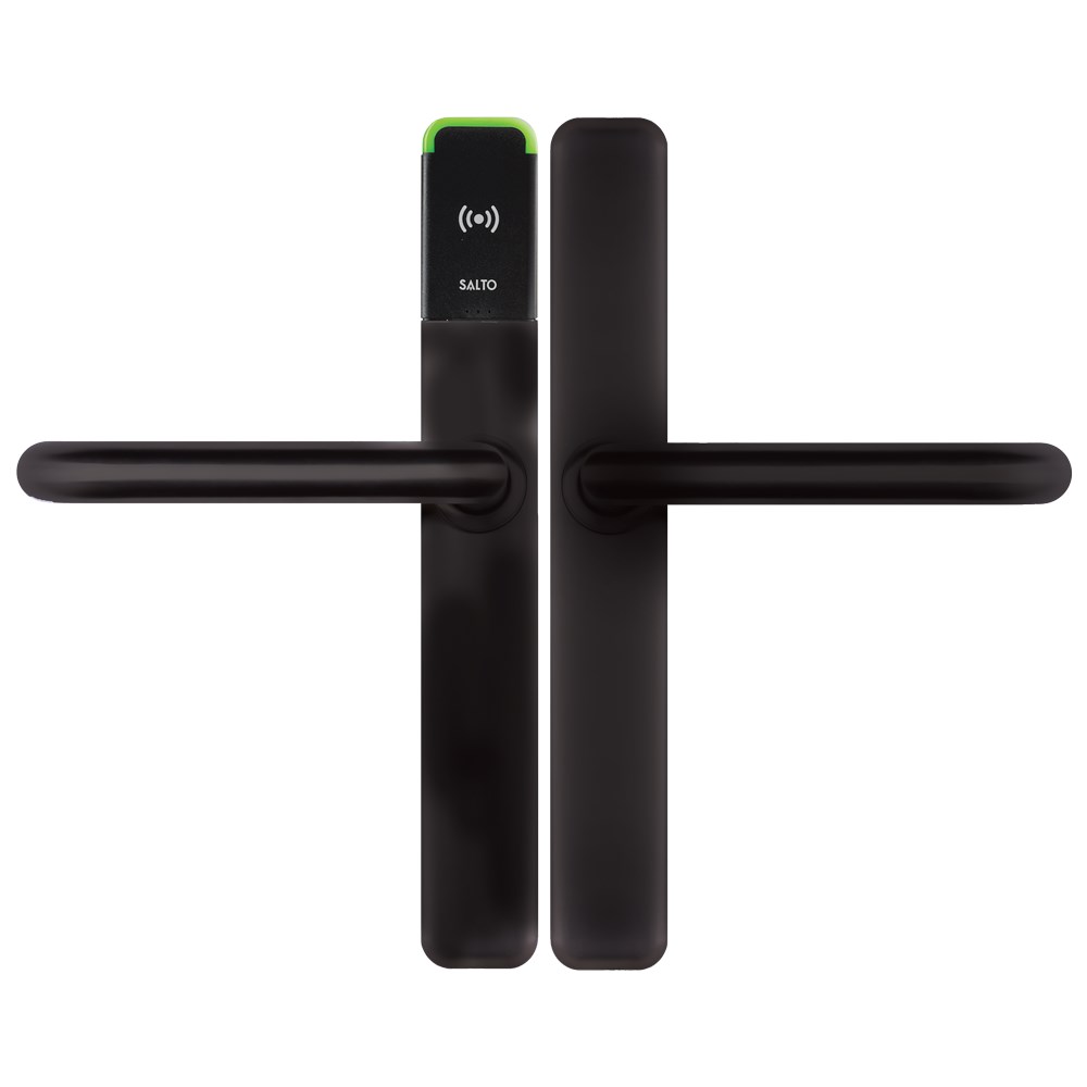 SALTO XS4 ONE Escutcheon with Z Handles, HSE, BLE and Mifare DESfire, 7.6mm Spindle, Black Finish with Black Reader suit 42-47mm Door, For Indoor Use.
