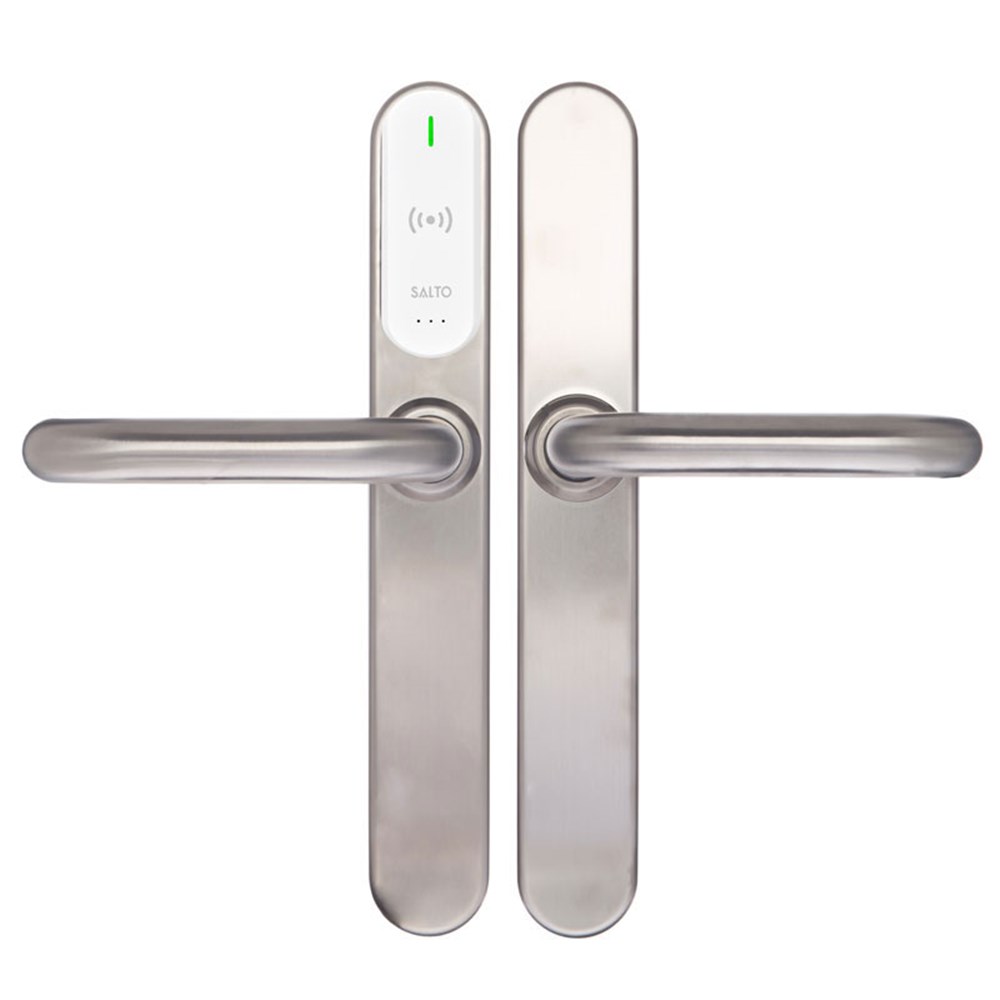 SALTO XS4 Original+ Escutcheon, Mifare BLE, 40mm Narrow Body U Handle, Satin Stainless Steel, White Reader, 37-43mm Door, 7.6mm Spindle, Outdoor IP56
