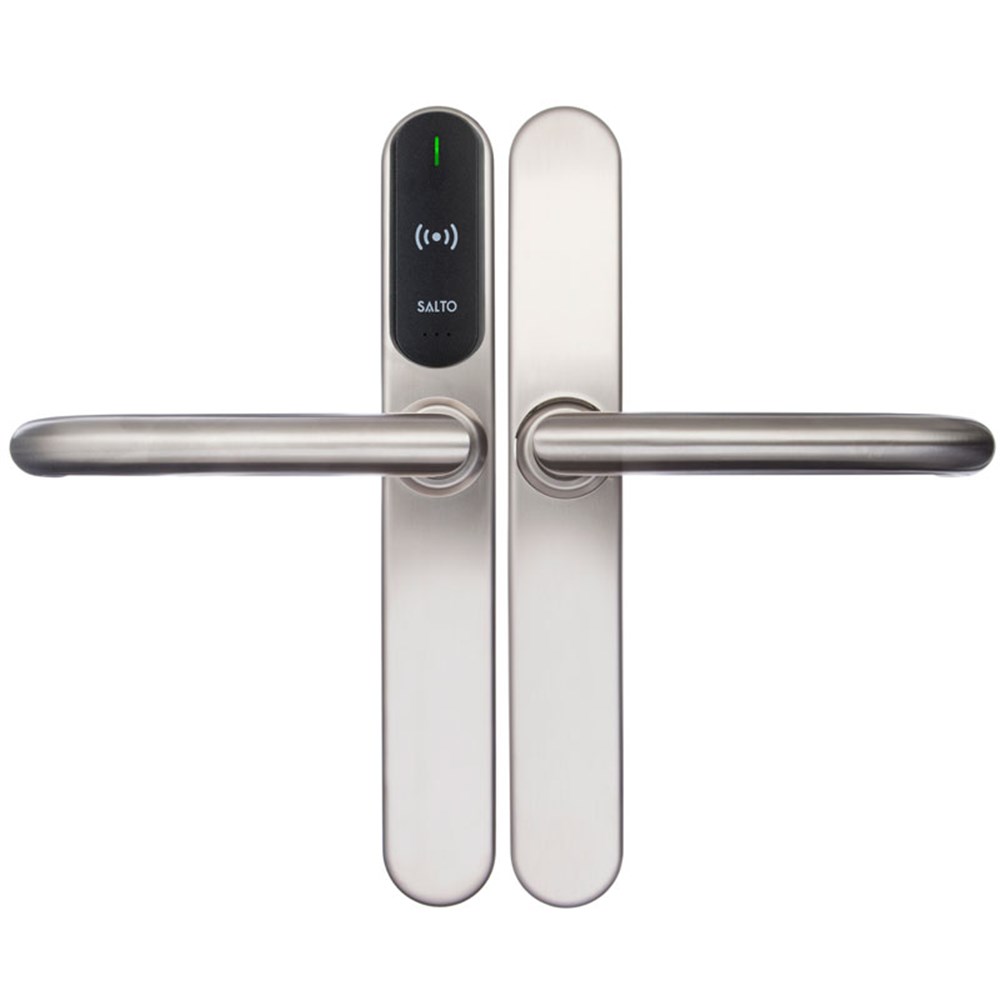 SALTO XS4 Original+ Escutcheon, Mifare BLE, 40mm Narrow Body Z Handle, Satin Stainless Steel, Black Reader, 60-75mm Door, 8mm Spindle, Outdoor IP56