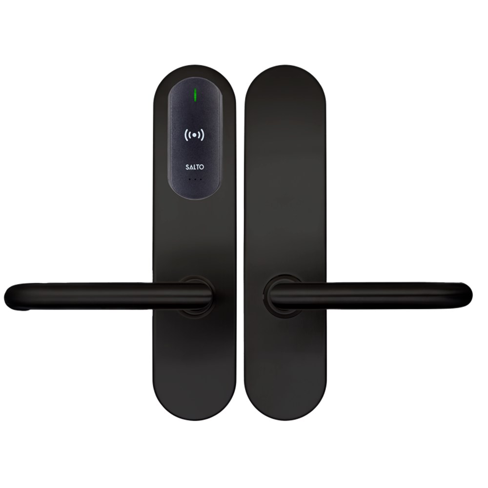 SALTO XS4 Original+ Escutcheon Mifare BLE ANSI 67mm Wide Body Z Handle Black Black Reader 37-43mm Door 7.6mm Spindle Indoor