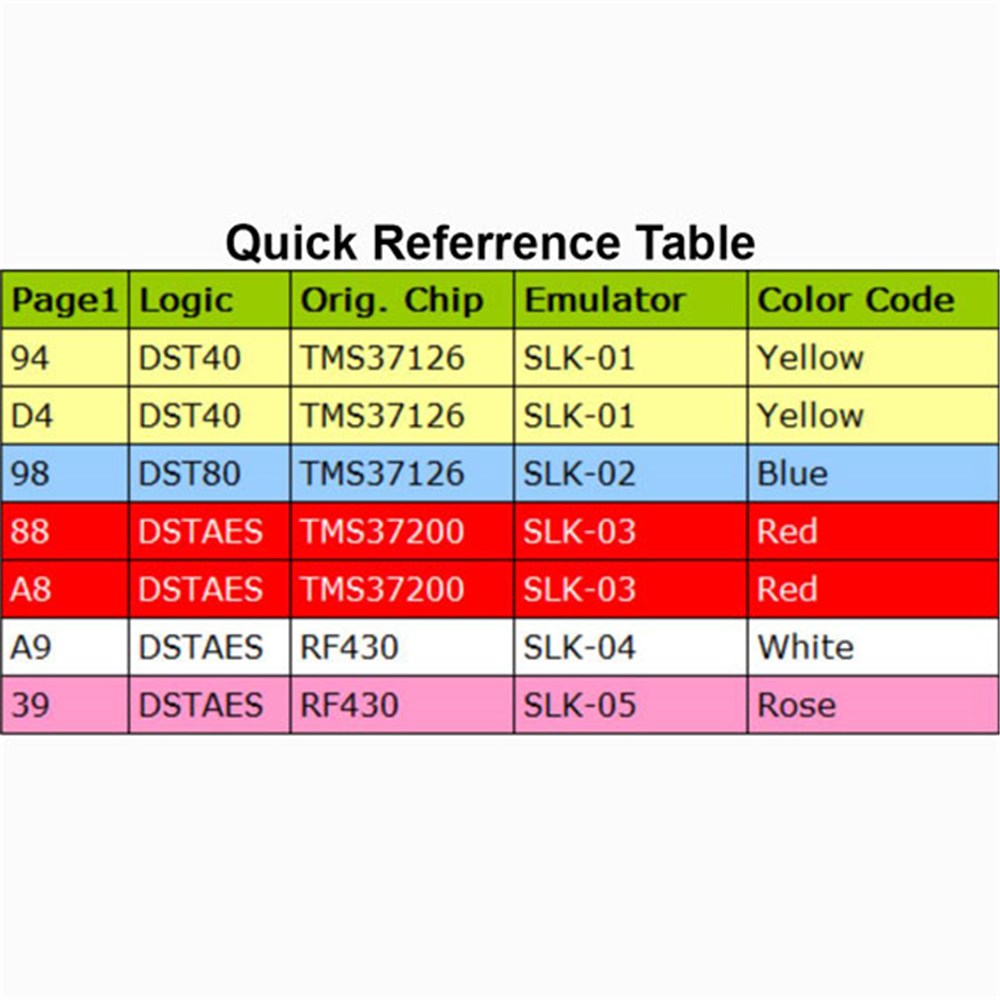 The SLK-01 Emulator supports work with Toyota DST40 smart keys [Page1 94, D4]. The SLK-01 supports emulation/cloning.