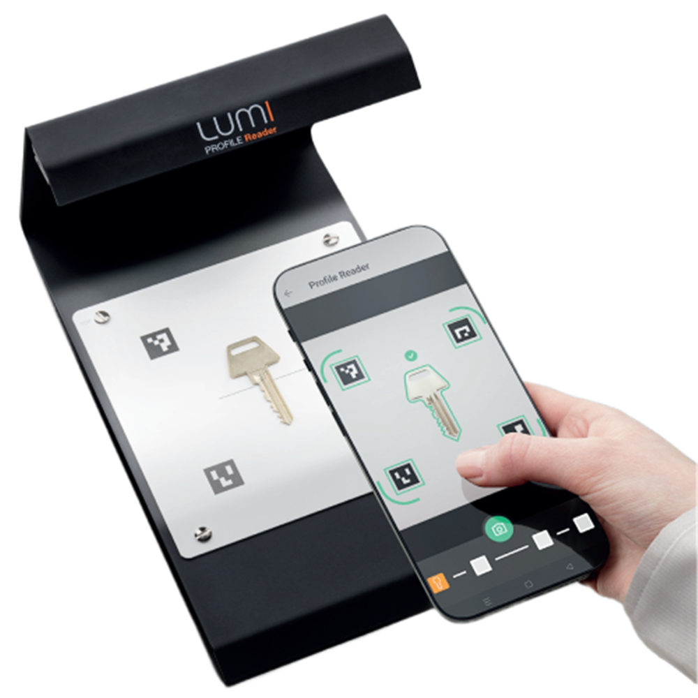 The Lumi base provides consistent, high-quality lighting for accurate key imaging, while the software harnesses artificial intelligence and a database of over 6,000 flat and dimple residential key profiles to deliver fast, reliable matches.